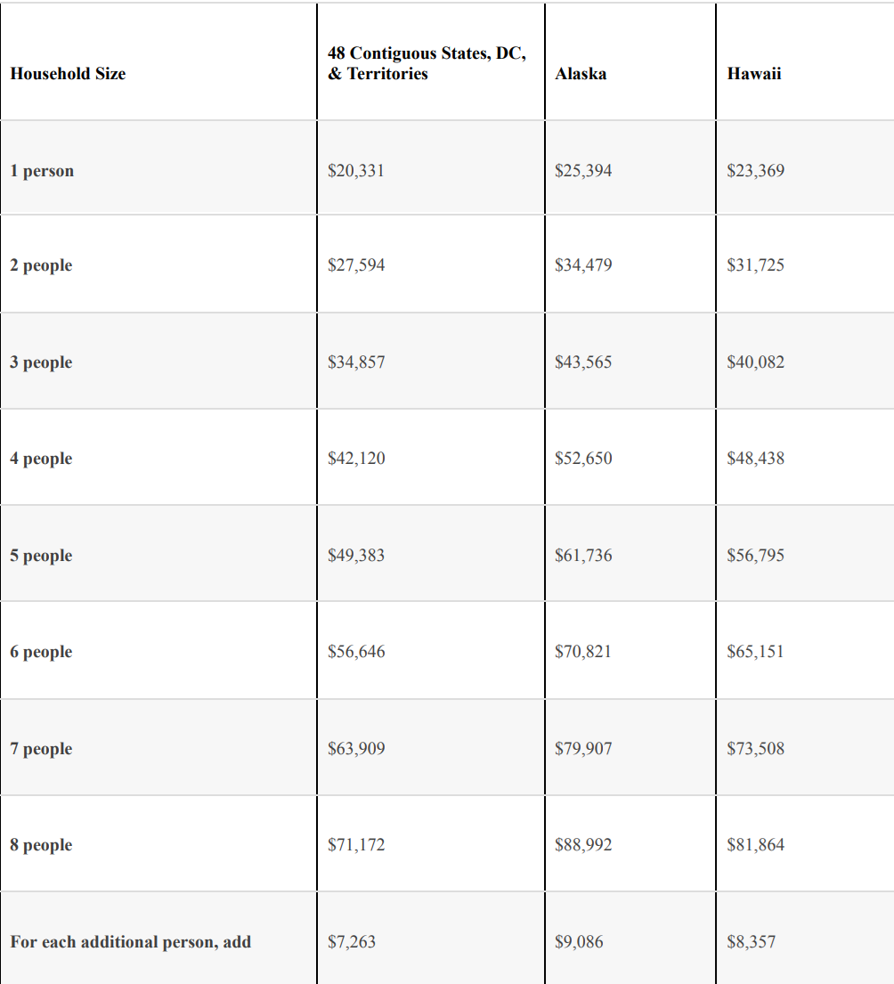 Note: The Federal Poverty Guidelines are adjusted annually, and the above chart reflects guidelines for 2024.