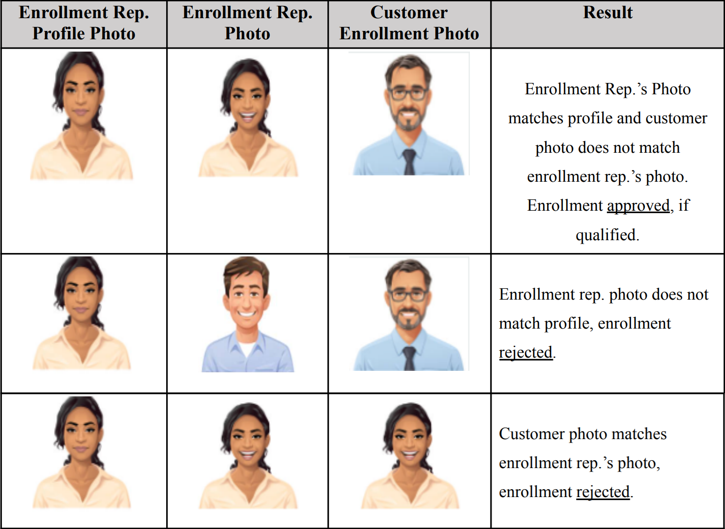 1. If the enrollment representative’s picture is different than the picture in the enrollment representative’s profile, the enrollment will be rejected.