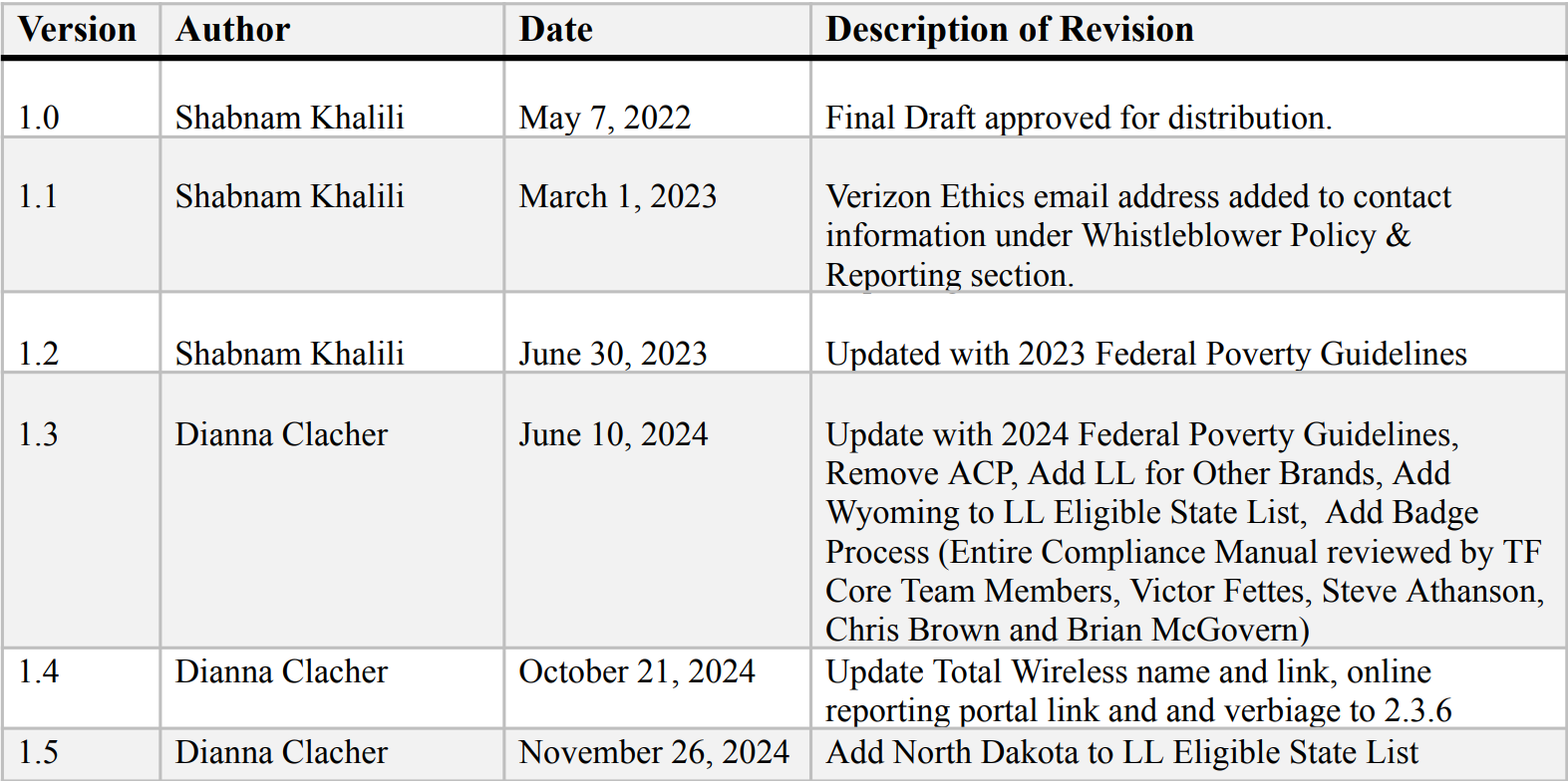 TracFone Wireless, Inc. (“TracFone” or “Company”) is committed to achieving and maintaining full compliance with all laws, regulations, and policies governing the conduct of our business. Consistent with that objective, TracFone compiled this Enrollment Representative Compliance Manual (“Compliance Manual”), which provides an overview of the policies and procedures related to the Federal Communication Commission’s Lifeline program. The objective of this compliance framework is to attract and service eligible customers of these programs, while strictly adhering to applicable law.