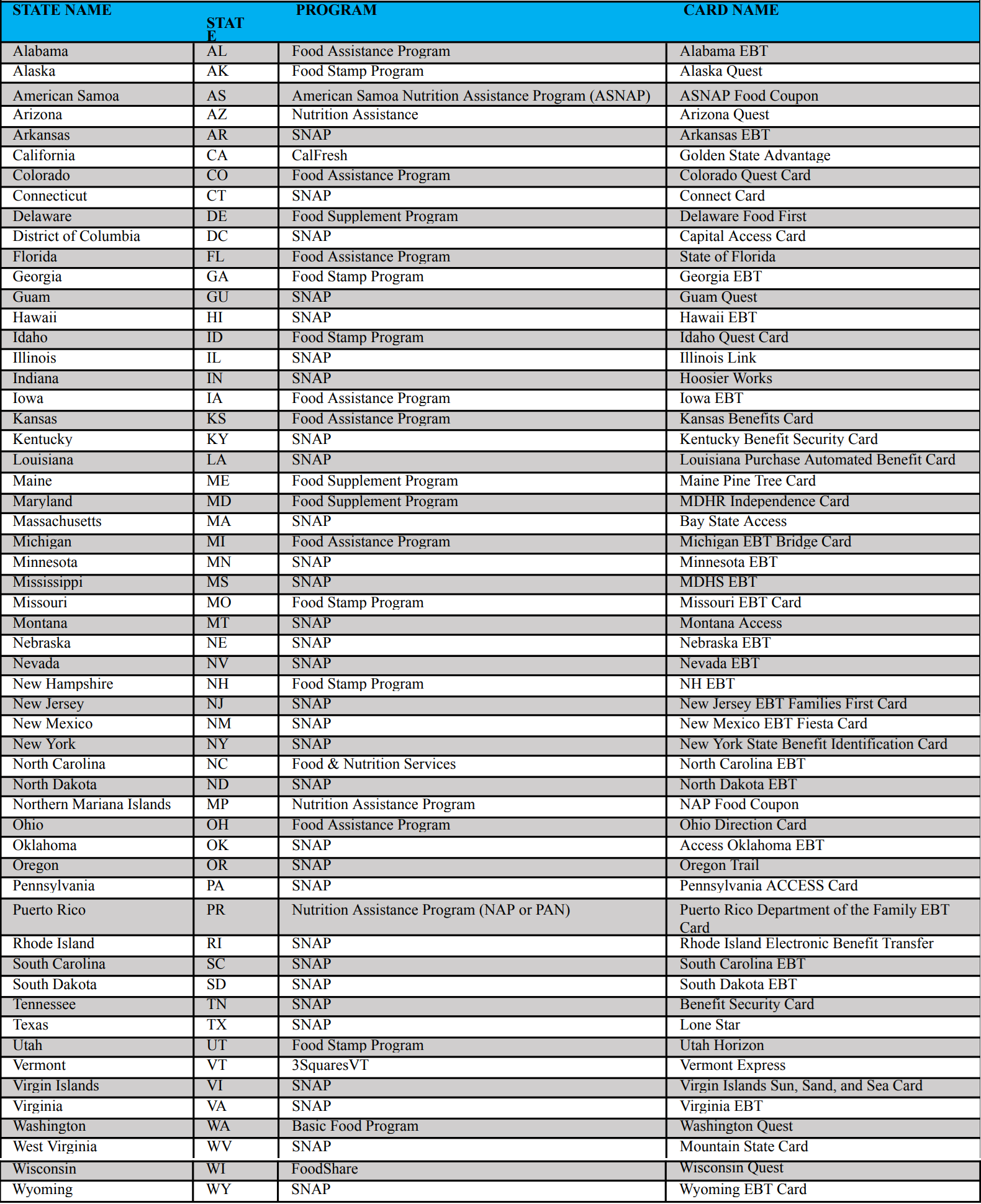 - SNAP programs are administered by the state and may be offered under a variety of different names. See Attachment C for a list of SNAP program names by state.