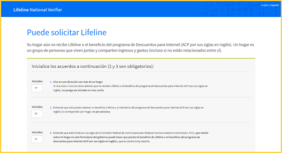 Si se debe seguir el proceso del Formulario de Hogar en el sitio de NatVer, los aplicantes deberán detallar el tipo de hogar en el que residen y confirmar que no viven en el mismo hogar que otro aplicante con la misma dirección. Otro requisito para solicitar el servicio será declarar que el aplicante no comparte ingresos y gastos con otra persona que reciba Lifeline en la misma dirección.