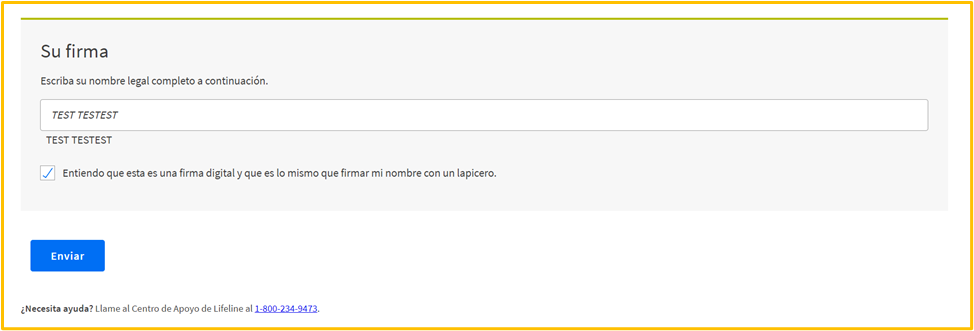 En la parte inferior, habrá una sección para proporcionar la firma electrónica. Los aplicantes deberán escribir su nombre completo y marcar la casilla proporcionada.