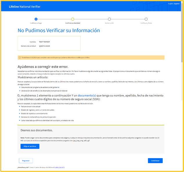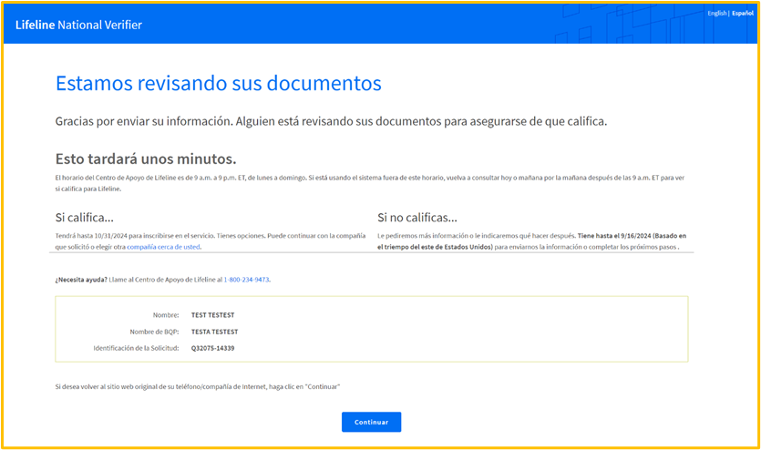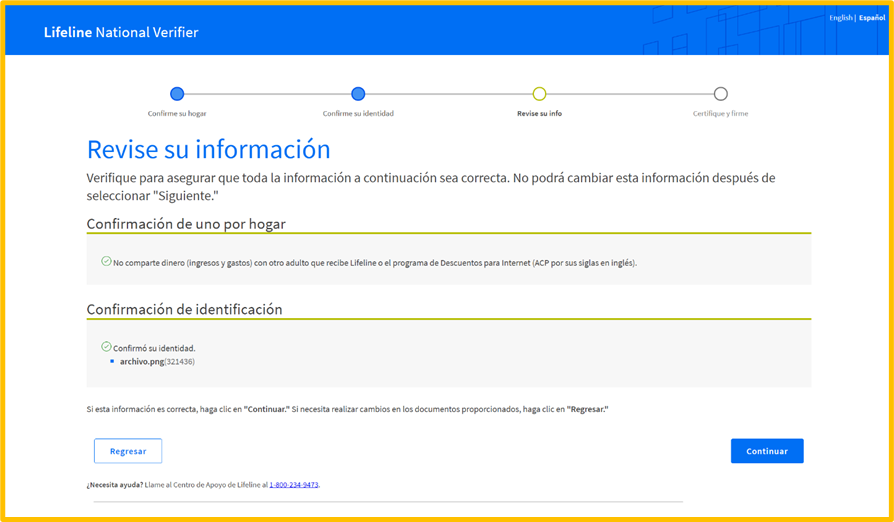 En la siguiente pantalla, los aplicantes deberán revisar la información enviada para confirmar su identidad. Después de completar todos los requisitos, los aplicantes serán dirigidos a la página de verificación, donde encontrarán información relacionada con el proceso de validación.