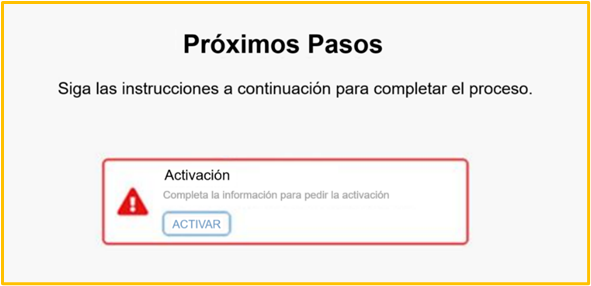 Después de que todas las pruebas necesarias y los requisitos hayan sido aprobados, el botón de ACTIVAR estará disponible.
