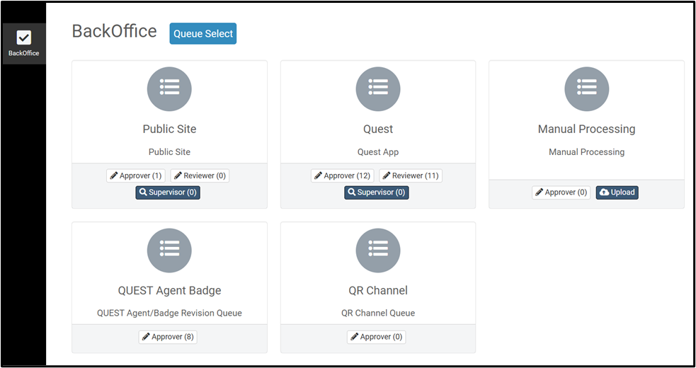 - Quest Agent Badge: In this section, BO agents will be able to perform the Badge validation process that will be introduced later on (this option will be available based on the user's role).