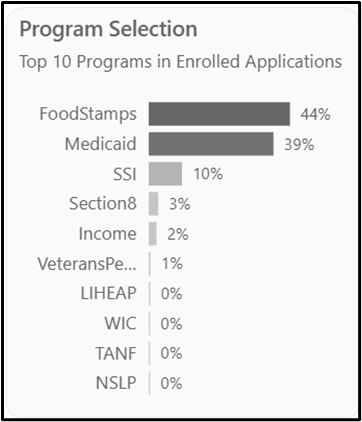 In the example shown above, we can see that FoodStamps and Medicaid are the most common programs by far.