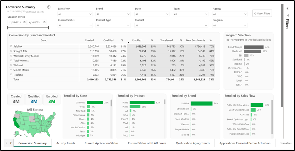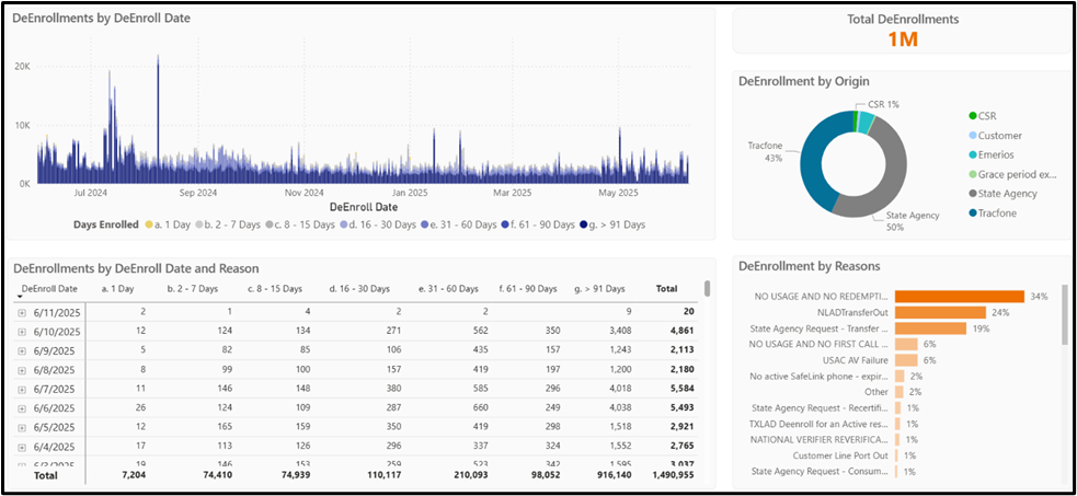 This section provides an overview of key metrics and overall system performance. It includes detailed analyses of enrollments, activations, enrollment counts, statuses, usage, and other relevant data, offering a concise summary of critical information related to the Lifeline benefit.