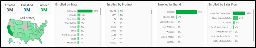 There will also be four tables showing the percentage of enrolled applications sorted by State, Product, Brand, and Sales Flow.