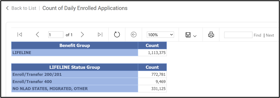 This report displays key information related to the Lifeline benefit. As shown in the image below, a set of fields is available to allow users to customize the data output.