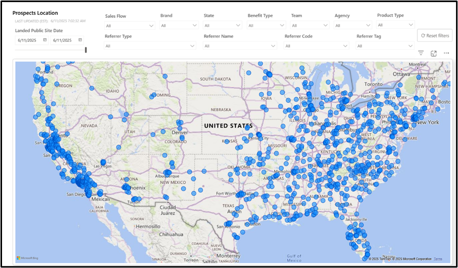 The page will also display a map of the United States, segmented by state. Each state will be color-coded based on the number of enrollments generated in that area. States with no enrollments will appear in grey, those with moderate enrollment activity will be shown in light green, and states with high enrollment activity will be displayed in dark green.