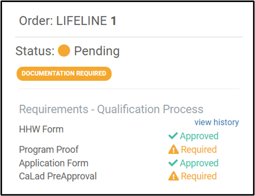 In the case above, the applicant has the Application Form and the HHW Form Approved, while the rest of the validations are still Required. The CALAD Verification is external and we need to get a response from their side to have it approved. On the other hand, the Program Proof is required because the applicant hasn’t still provided one.