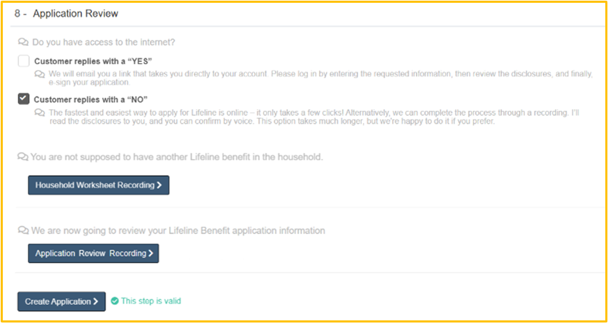 · Using the current CSR Voice Recording feature from Vault. If applicants state that they don’t have access to the internet, this option should be provided to complete the enrollment process at the moment.