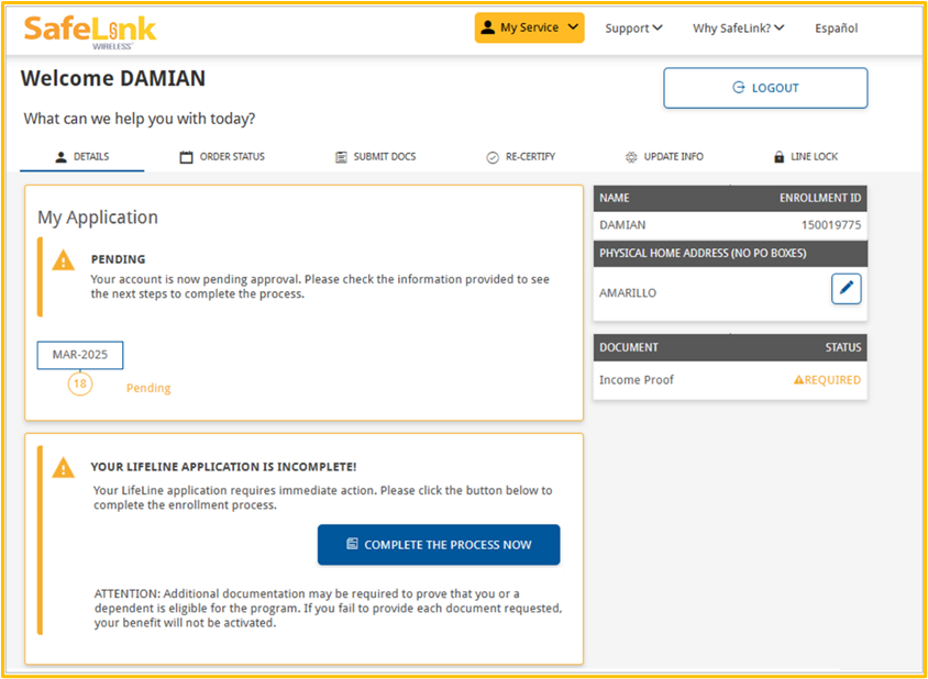 If applicants prefer to complete the process through the website, after logging in to their account, they will find the COMPLETE THE PROCESS NOW button, so that they can agree to all terms and conditions and in some cases provide additional information.