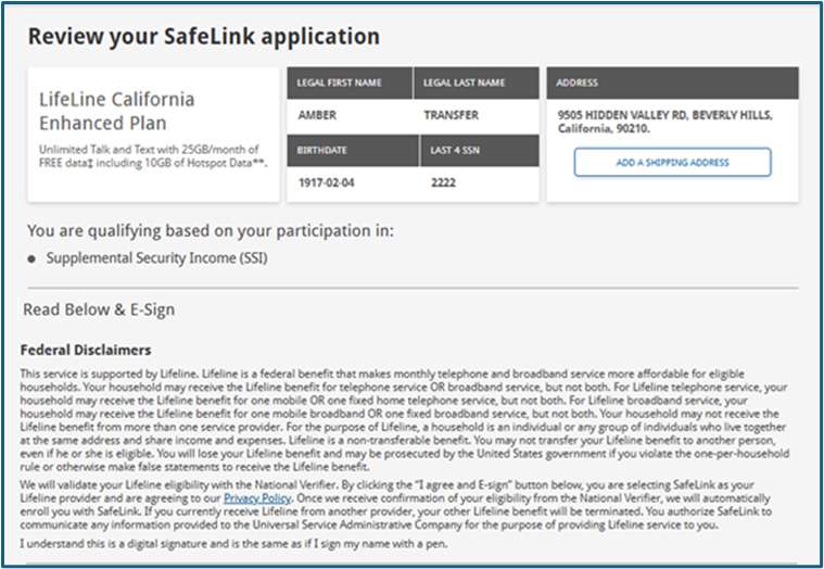 In the Review and E-sign section, federal disclaimers will be added apart from the ones of the state when the plan/discount is Federal + State.