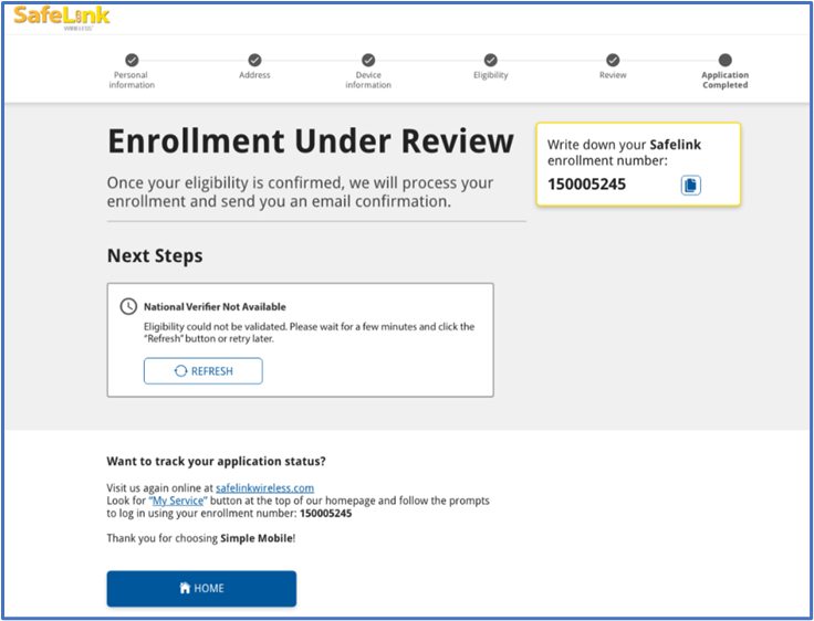 After applicants complete the NatVer validation process, the system will inform them that the enrollment is under review, and that they need to wait for the final decision through an e-mail confirmation.