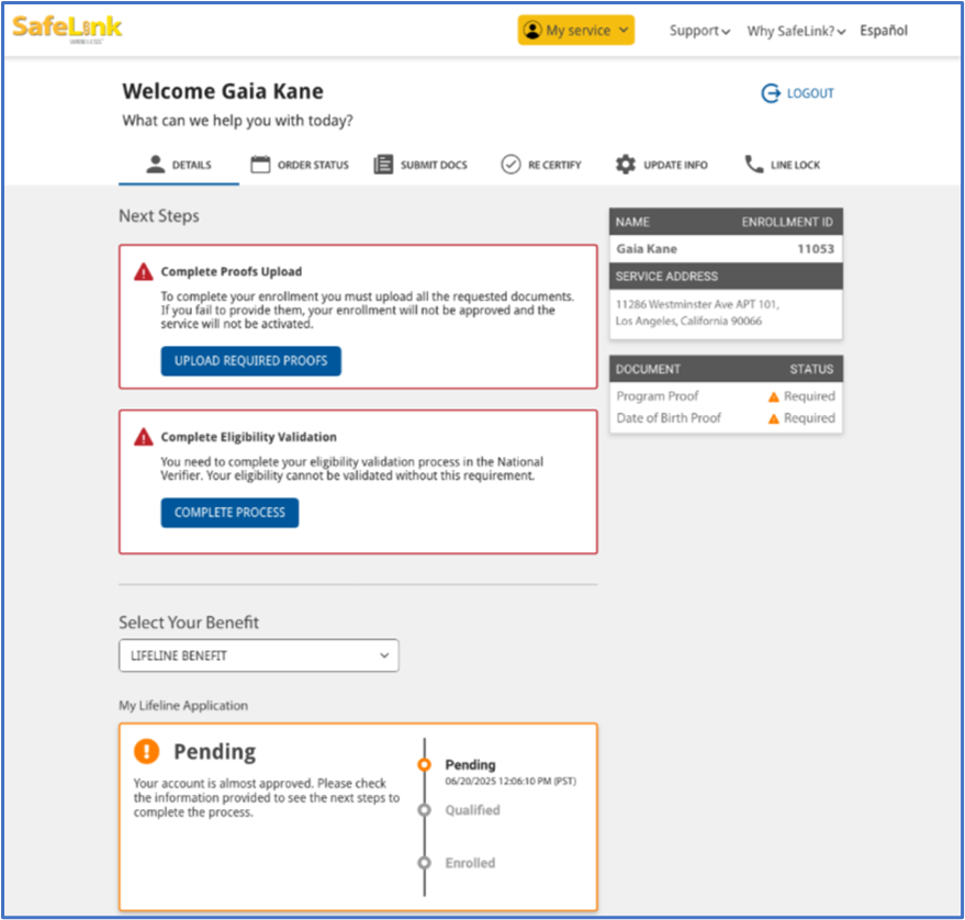 Approval typically takes 20-30 minutes, but some applications may take 3-4 days if additional documentation is needed. You can check your application status in the Home page, at the top of the screen look for "My Service" button and follow the instructions to log in. Once approved, you'll receive an email confirmation about your enrollment.