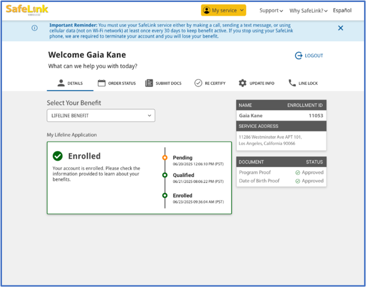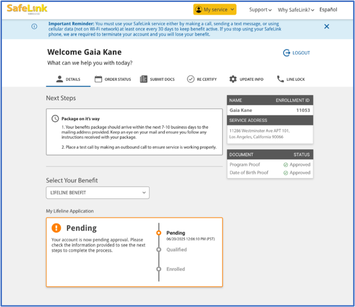 For California applications with state benefits, a new email template will show the "California Lifeline" words in the subject line, headers, and body content.