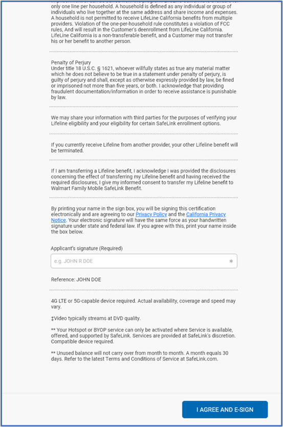In the Review and E-Sign section, federal disclaimers will be added apart from the ones of the state when the plan/discount is Federal + State. Applicants will see first the Federal disclaimers: