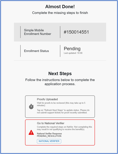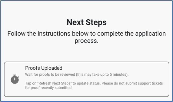 As the image above shows, in case the applicant’s eligibility cannot be validated, the applicant will be informed to wait a few minutes or retry later by clicking on the REFRESH button. Once all the validations are passed and the necessary proofs have been provided, the enrollment will be Qualified/Enrolled. The applicant will become a customer, and no more steps will have to be completed.