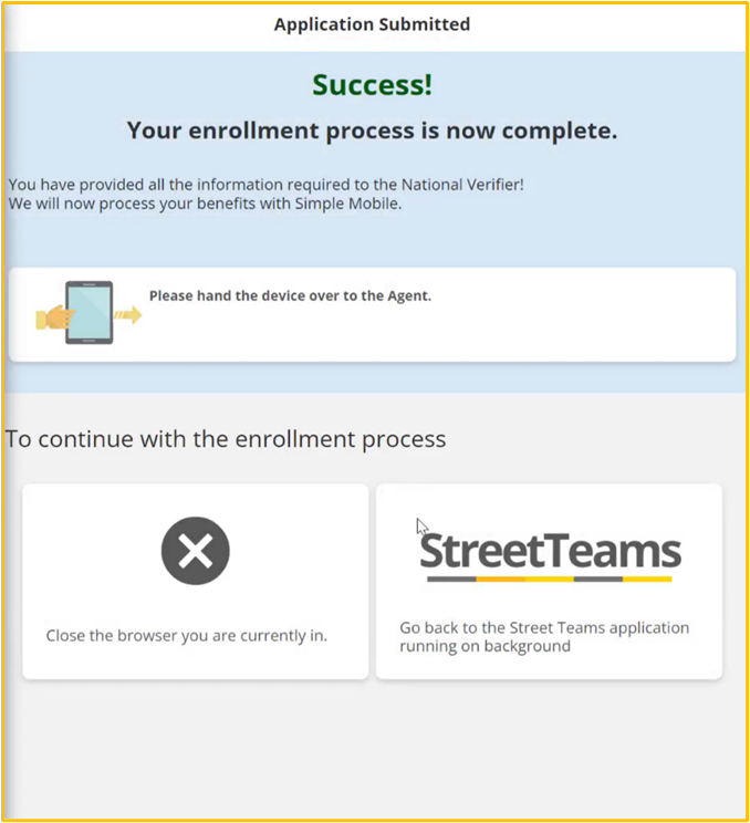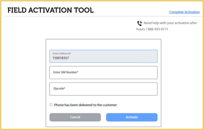 Finally, Street Team Agents will have to follow the instructions provided in the Field Activation Tool, where the Lifeline Id, the SIM Number, and the Zip Code will have to be provided.