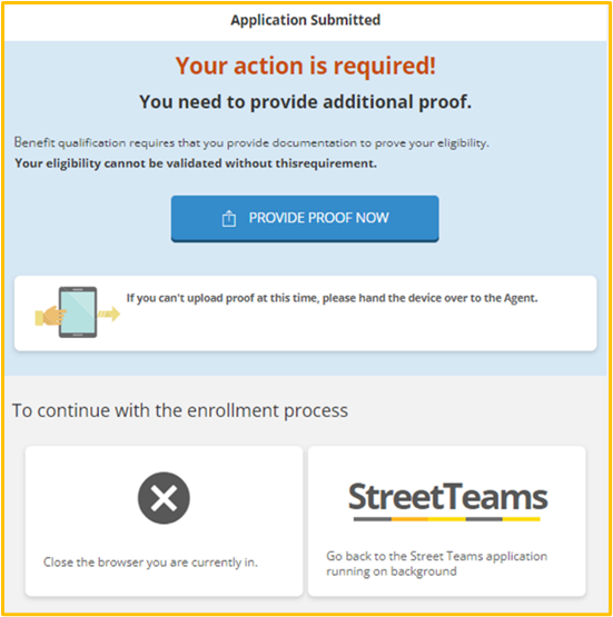 If additional proofs are required, the PROVIDE PROOF NOW button will become available for the applicant to upload the required documentation.