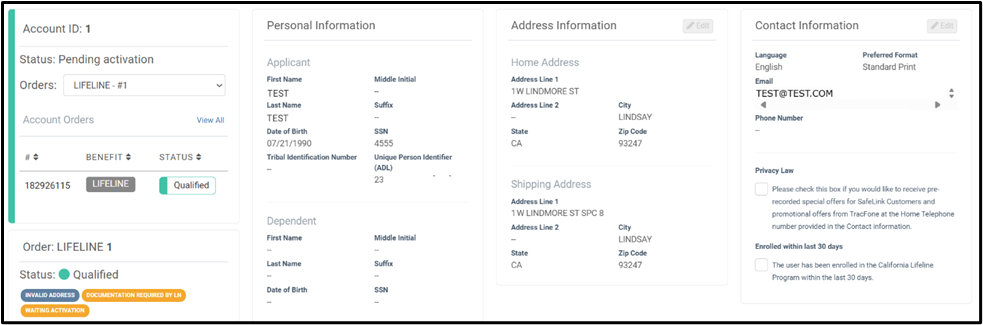 The CSR Tool will be showing the Information for the Enrollments. When accessing an enrollment from CSR, the following information will be displayed in different sections