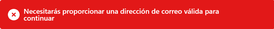 Si la dirección parece ser inválida, un pop up nos explicará el porqué de la invalidez, por lo que habrá que verificar la información introducida: