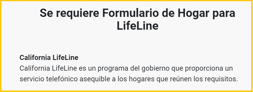 El proceso del Formulario de Hogar será obligatorio en algunos estados, y en otros casos deberá completarse porque la dirección parece estar siendo utilizada por otro cliente de Lifeline.