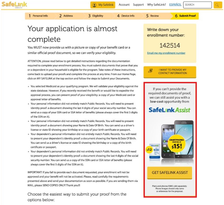 If applicants want to use that code, they can introduce it in the My Account section from the Safelink website. For this, they need to have the enrollment number provided by the agent. ST agents will be provided with flyers with instructions that they have to provide to applicants.