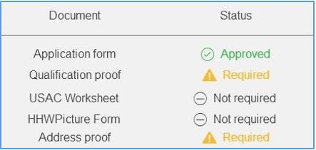 In case that we have not received the necessary proofs, the Qualification Proof section will state that the proofs are Required. The same message will be displayed in case that we have received the applicant’s proofs, but they were deemed invalid. Whenever a valid proof is received, then the status of that proof will be Approved: