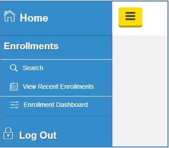 If ST Agents need to search for an existing enrollment to verify the status or because the applicant did not have proofs handy when creating it and needs to submit them later, they will tap on the MENU button.