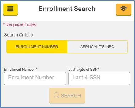 Then, the system will allow agents to make a look up by introducing the applicant’s Enrollment Number and the Last 4 digits of the SSN: