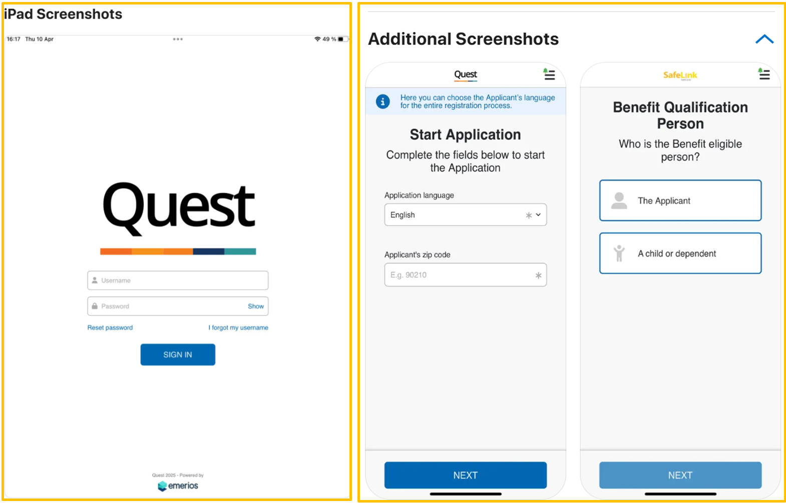 As shown below, the Quest application logo will be displayed at the top of the screen.