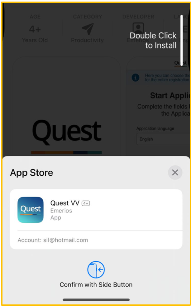 To install the application, the Side button of the iPad has to be clicked twice as indicated below.
