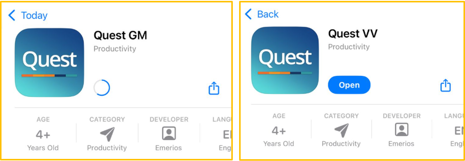 Once confirmed, the download process will take place. After the download is complete, the OPEN button will become available to start using the Quest application.