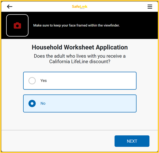 If the answer to the first question is Yes, the second questions will be displayed, where applicants will have to indicate if that person receives a Lifeline discount. If the answer is No the process will be finished.
