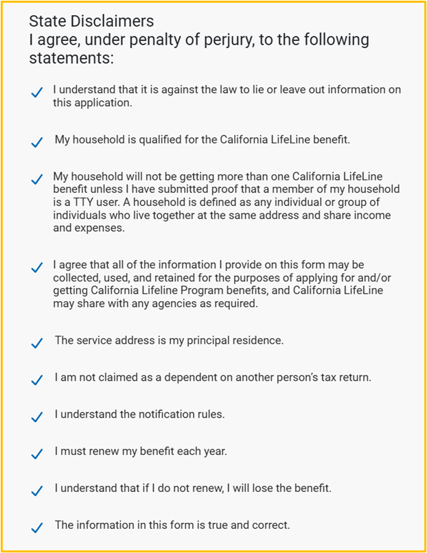 These disclaimers will also be displayed if the applicant chose the income option to apply.