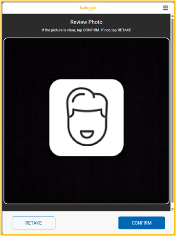 Before continuing with the enrollment process, applicants will have to indicate if the picture taken is clear enough. If that is the case, the CONFIRM button should be pressed. Otherwise, they can press the RETAKE button to take a new picture.