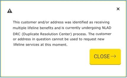 If this is the case, while trying to submit the application, a pop-up message will appear, informing that customers will not be able to apply since they were identified as receiving multiple Lifeline benefits. In this scenario, Street Team Agents will not be able to continue with the enrollment creation: