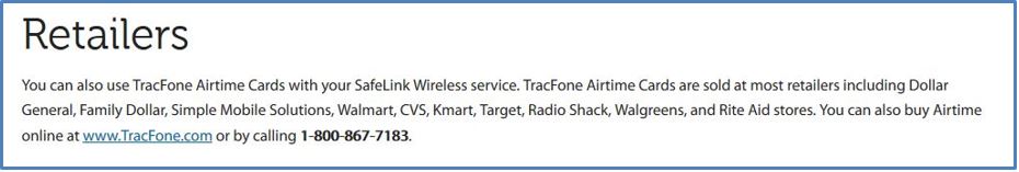 Customers will get information about the different retailers where they can get Tracfone pre-paid cards: