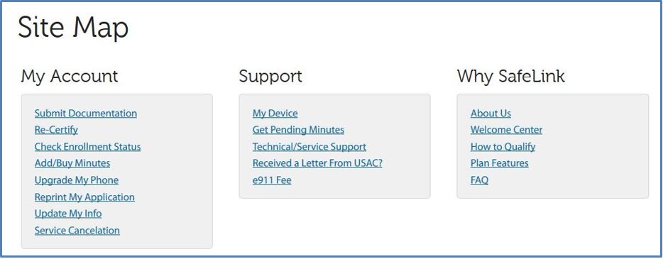 This section contains useful contact information, such as Customer Care and Technical Support contact numbers and Safelink’s mailing address. The hours of operation from each department will also be included: