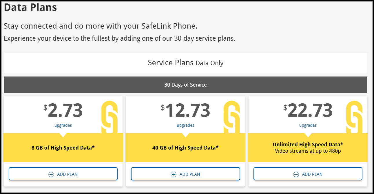 By clicking the Paid Plans options from the My Service tab, the customer will be led to the different options that they have available to upgrade their plan.