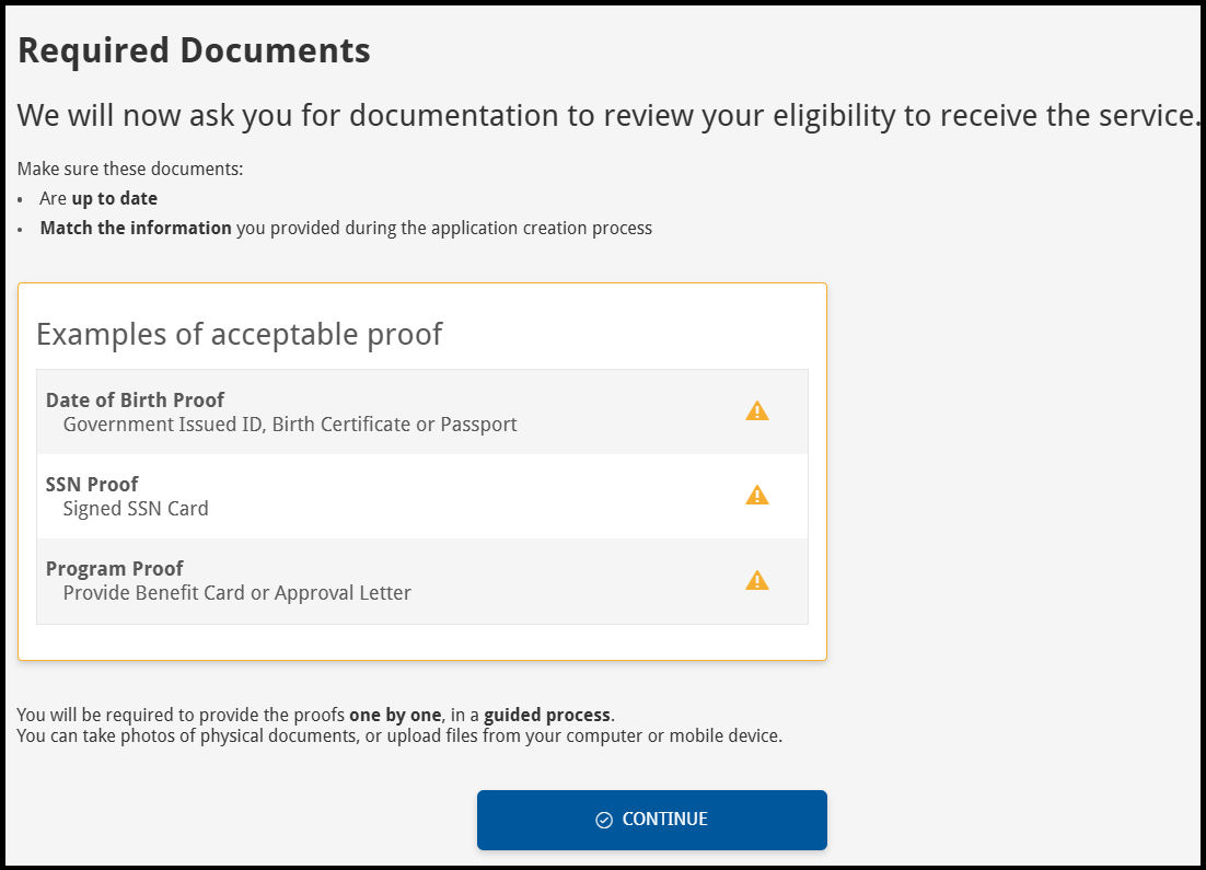 Once clicked, the website will display each pending proof required. For each case, examples will be provided to help applicants understand what documentation they need to submit.