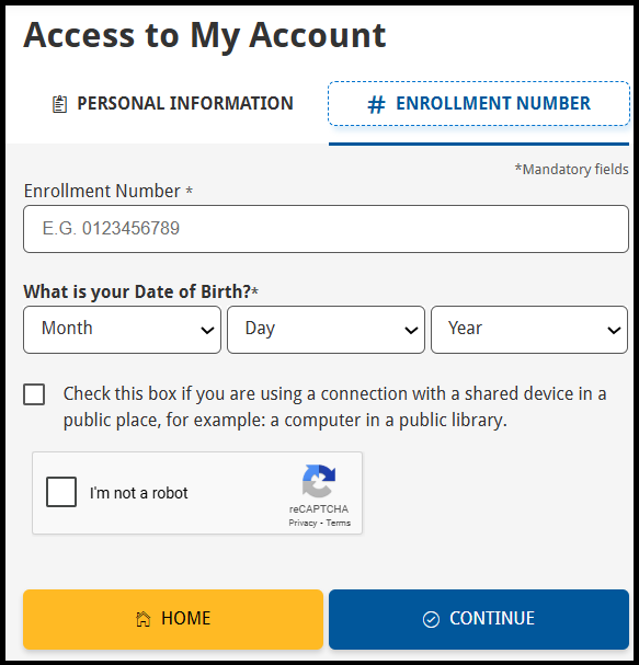 They also have the option to provide their Enrollment Number and the DOB to perform the search.