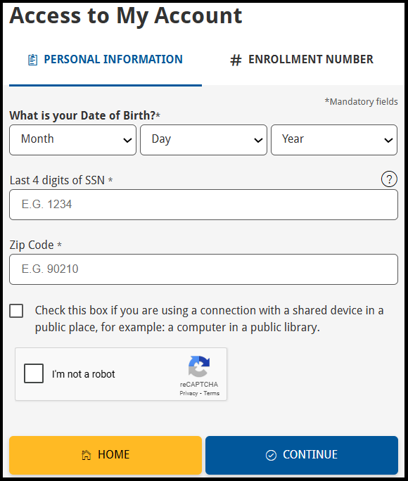 In order to access, customers have to provide their PERSONAL INFORMATION (DOB, last 4 of the SSN, and Zip code).