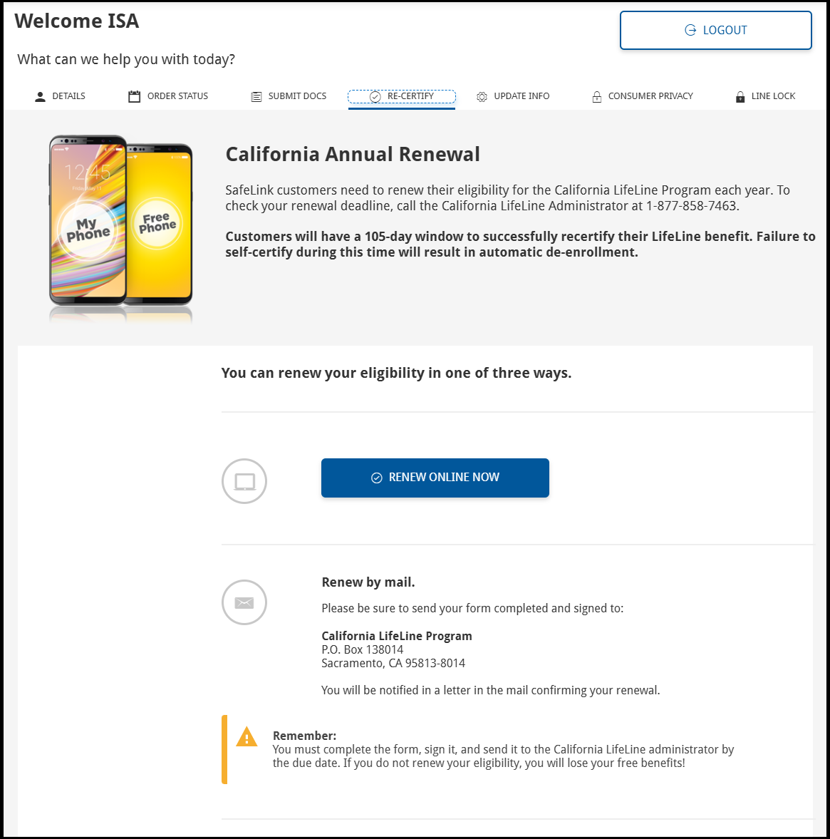 By clicking on the RE-CERTIFY tab, applicants will be provided with all the instructions to renew their service whenever needed. Below the instructions, applicants will find the different submission methods available to perform the verification.