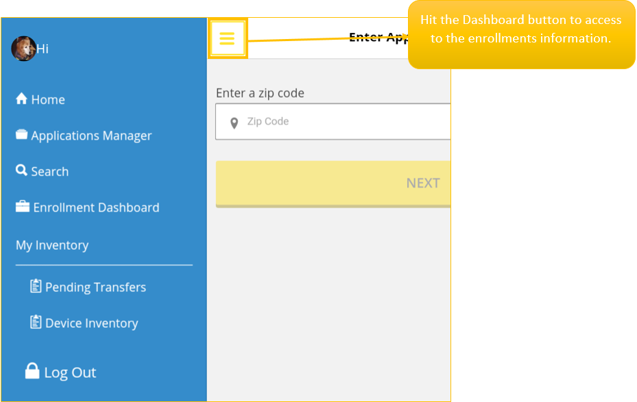 This option will take the agent back to the main screen, in order to enter a ZIP code and start a new application.