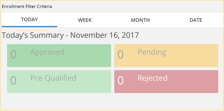 The Enrollment dashboard will show some quick numbers for the agent to know the amount of enrollments created, classified by status: