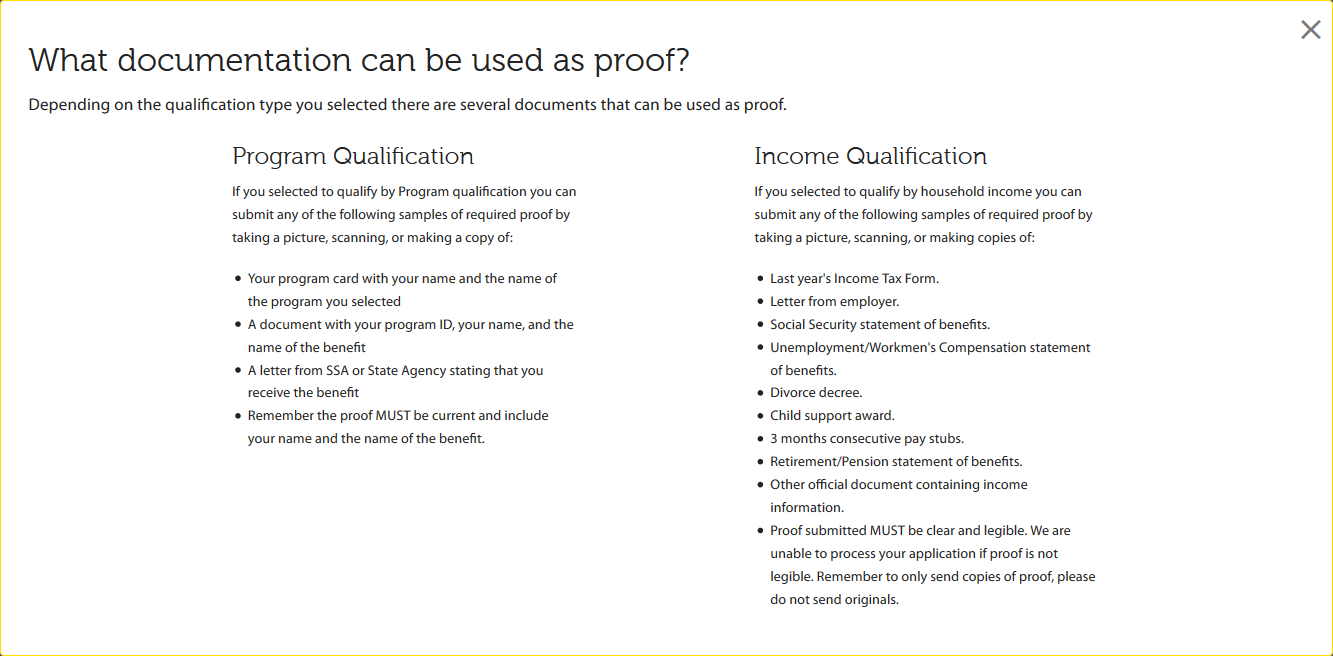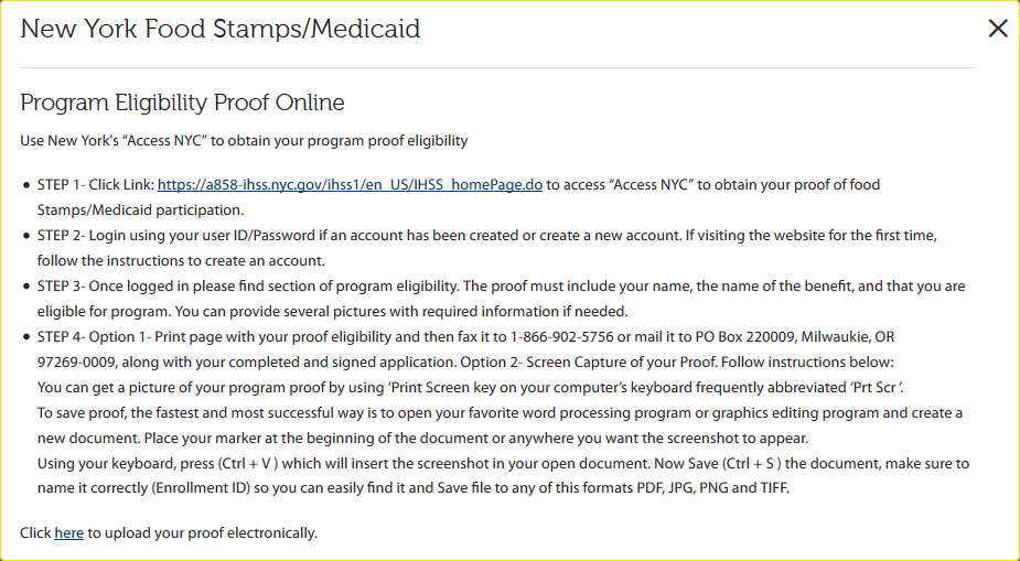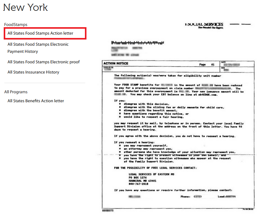 As it can be seen in the image below, the list of available proofs will vary depending on the state. In this case, the information listed belongs to the state of New York. By clicking on any of the options located to the left, applicants will be able to visualize the proof format:
